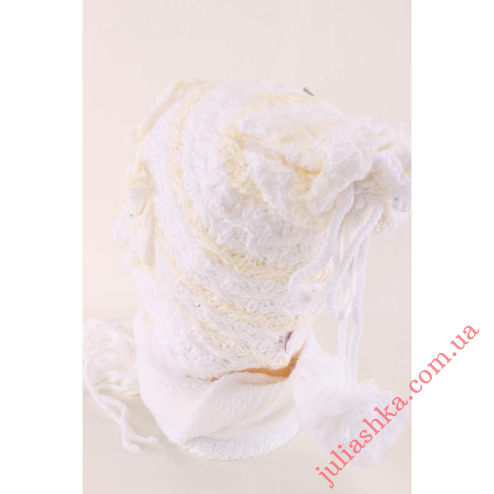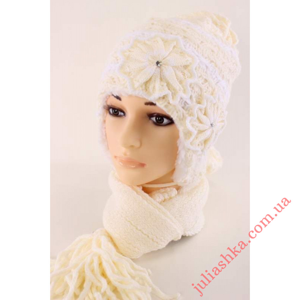 зимовий в'язаний комплект для дівчат -шапочка на хутряному підкладі та шалик