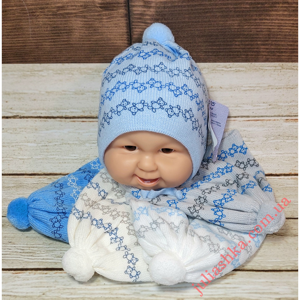 в’язана шапочка на трикотажному підкладі для новонароджених