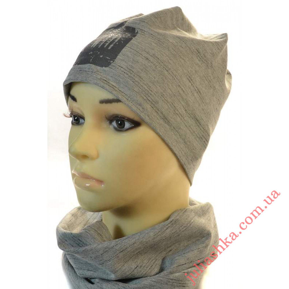 комплект для мальчиков -двойная трикотажная шапка и хомут