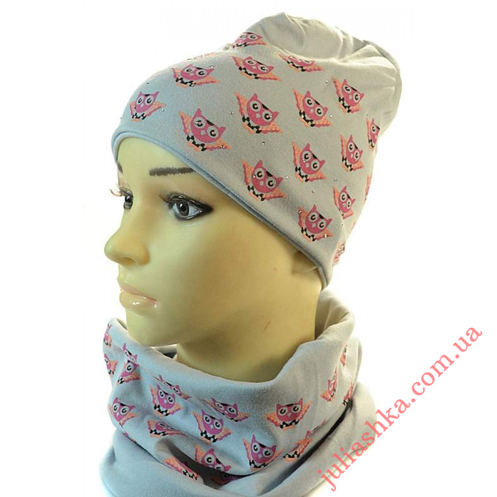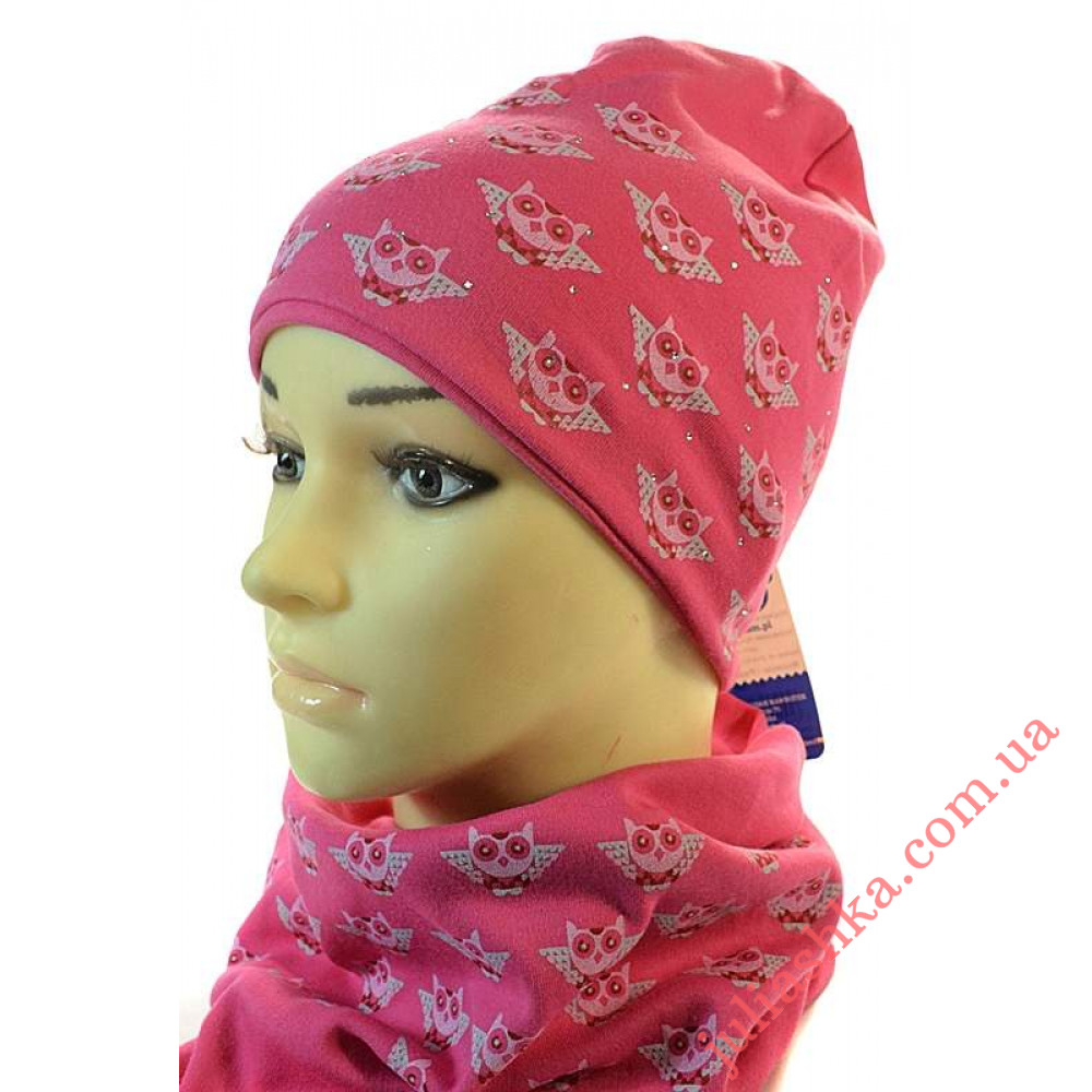 трикотажный комплект для девочек-шапка на трикотажном подкладе и хомут