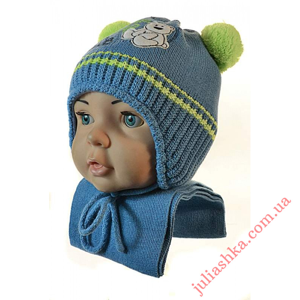 зимний вязаный комплект- шапочка с утеплителем SOFTI TERM на трикотажном подкладе и шарф