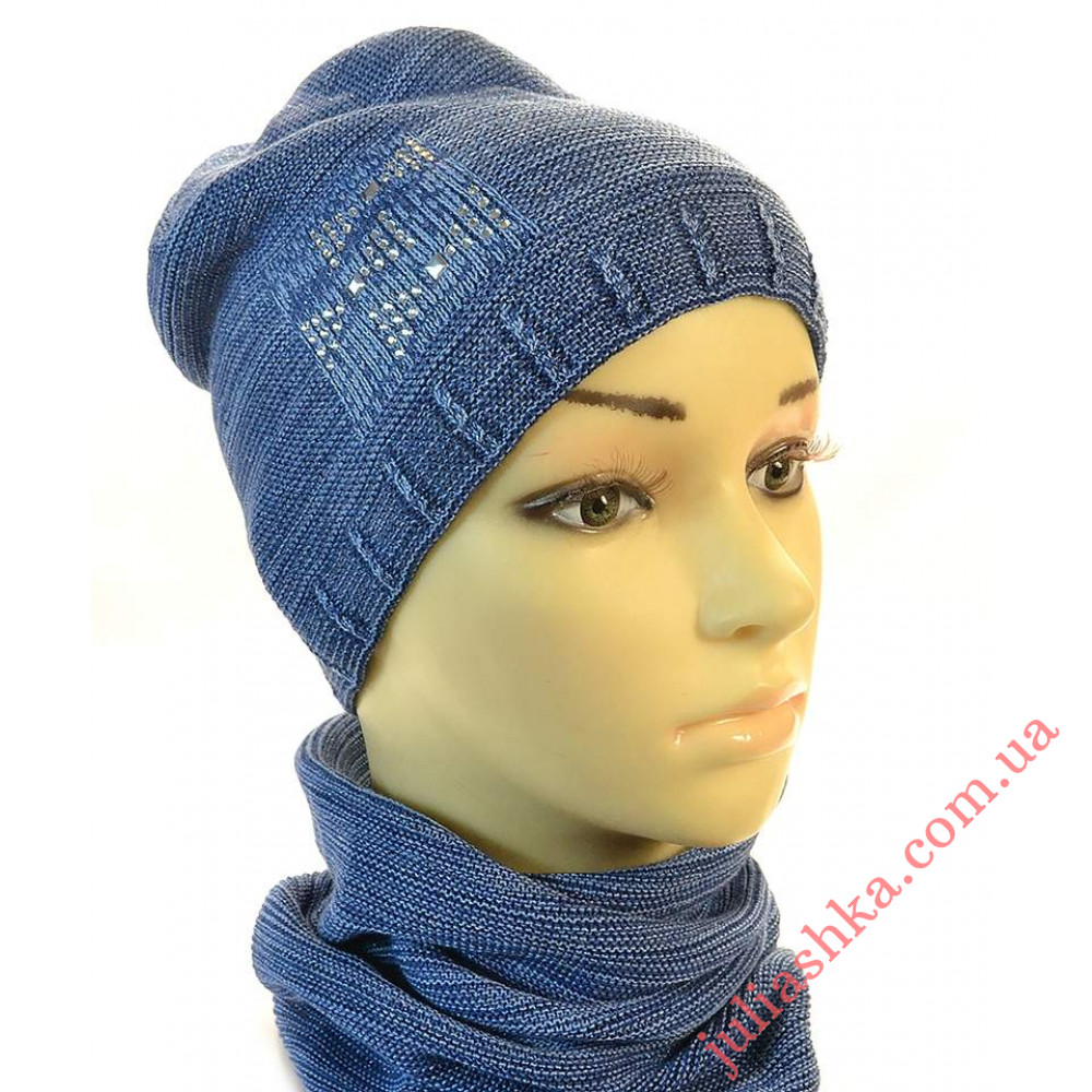 дитячий в’язаний комплект-шапочка на трикотажному підкладі та снуд