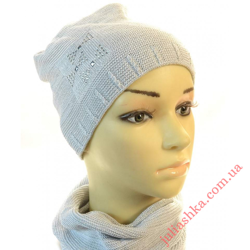 детский вязаный комплект-шапочка на трикотажном подкладе и хомут