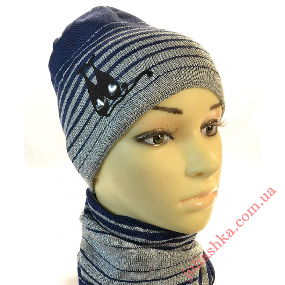 дитячий в’язаний комплект-шапочка на трикотажному підкладі та снуд