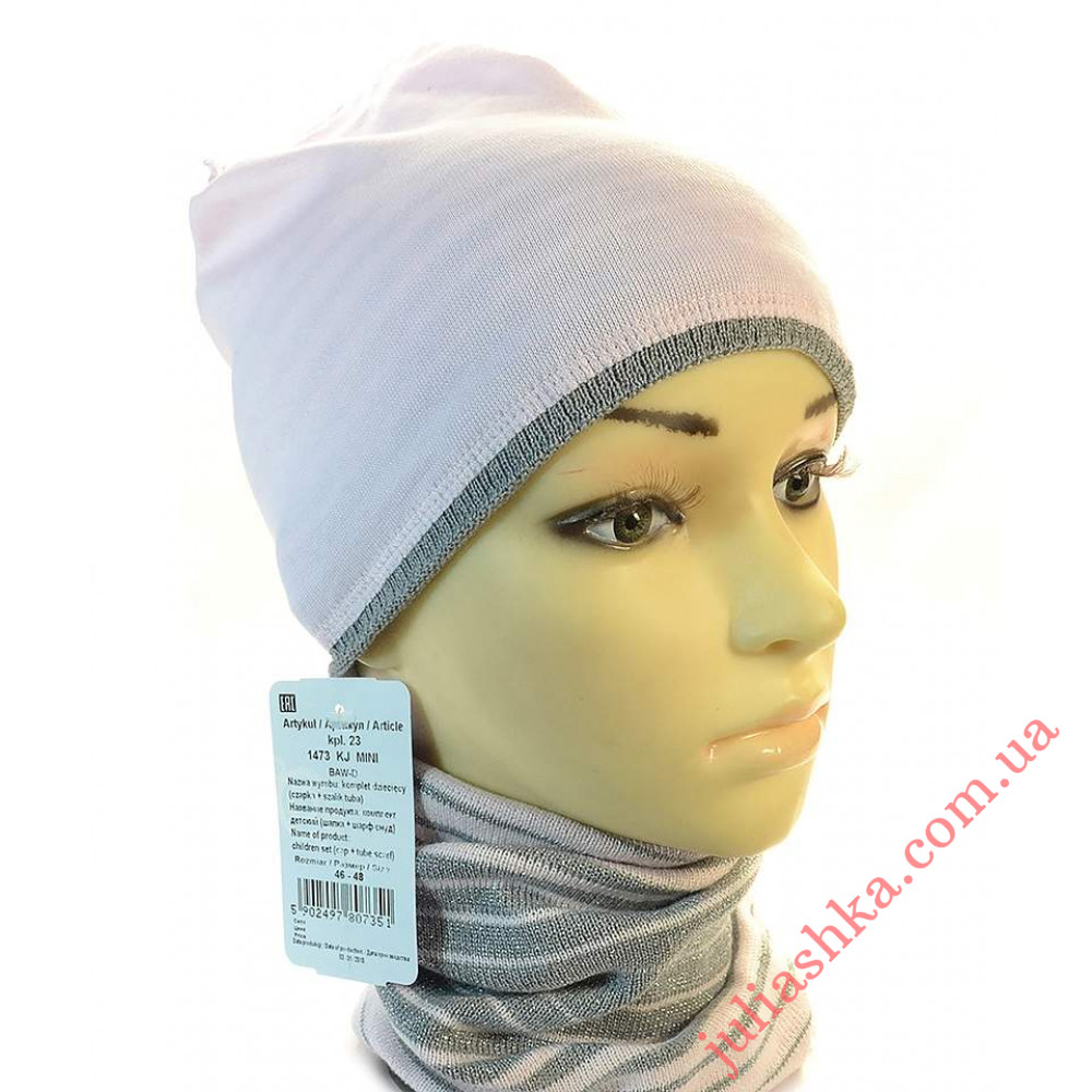 детский вязаный комплект-шапочка на трикотажном подкладе и хомут