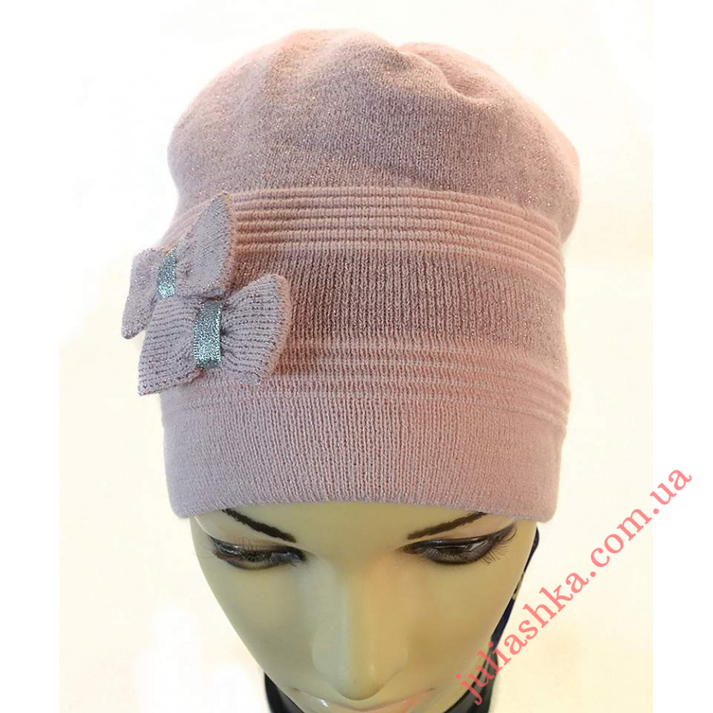 дитяча в’язана шапочка на трикотажному підкладі