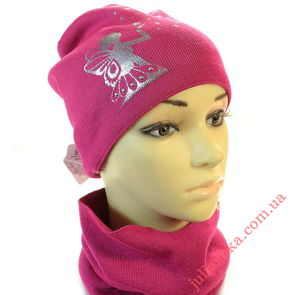 детский вязаный комплект-шапочка на трикотажном подкладе и хомут