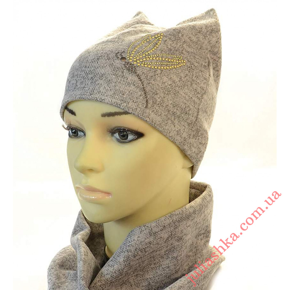 детский комплект-шапочка на трикотажном подкладе и снуд