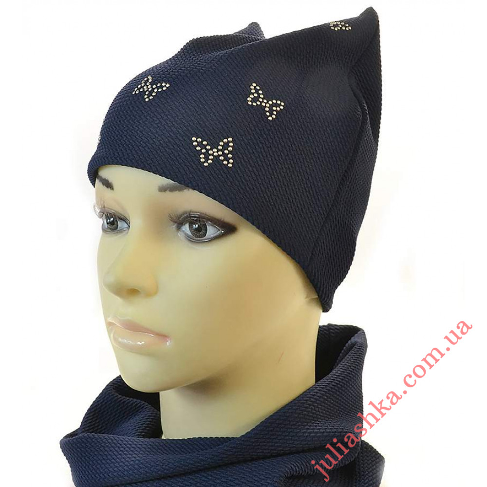 детский комплект-шапочка на трикотажном подкладе и хомут