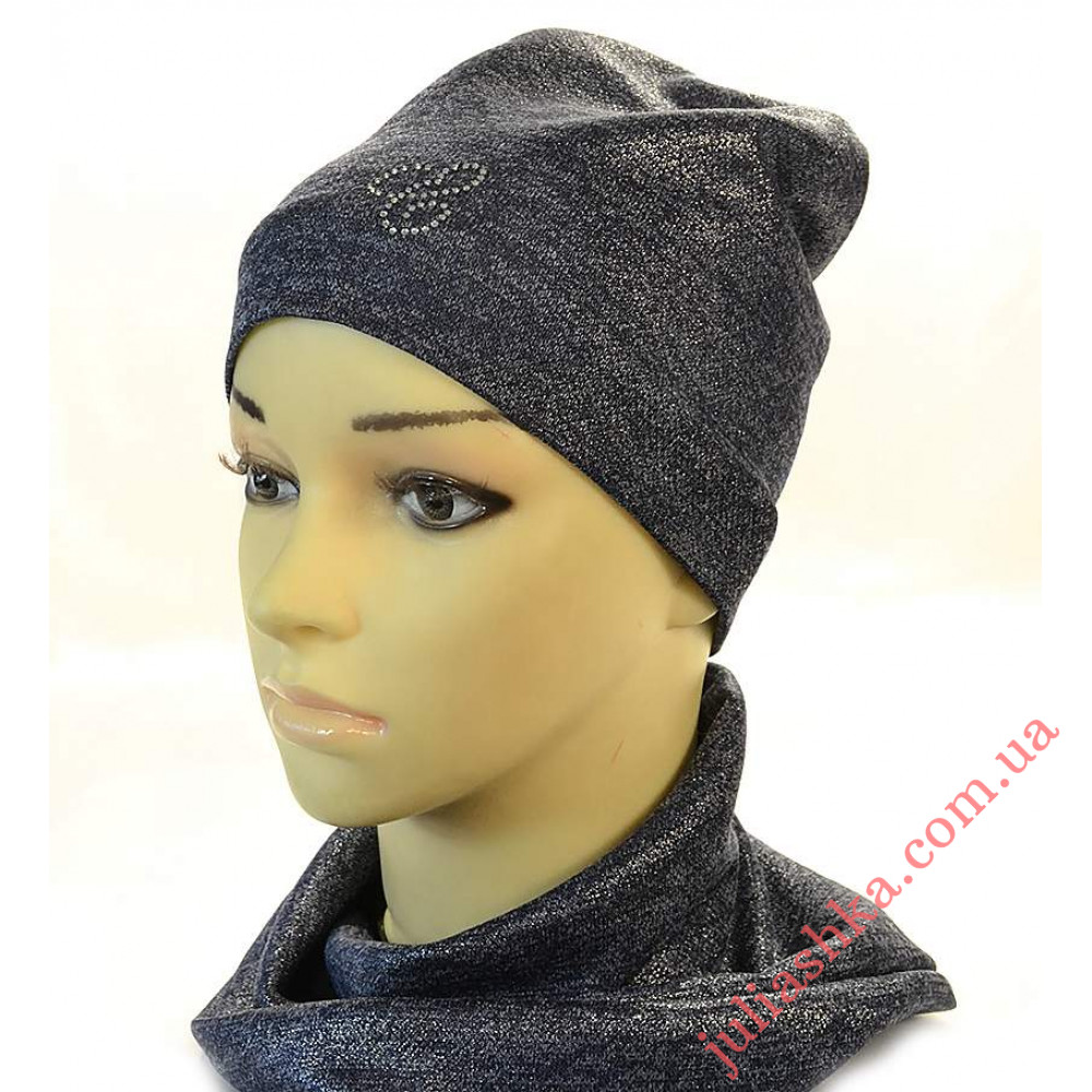 детский комплект-шапочка на трикотажном подкладе и хомут