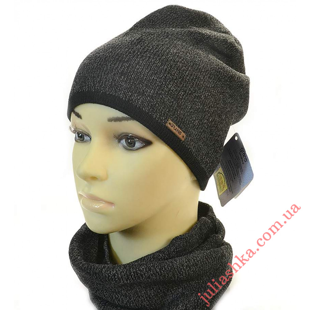 вязаный комплект для подростков -шапка на трикотажном подкладе и хомут