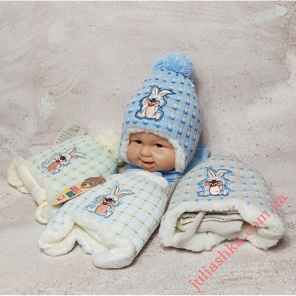 зимний вязаный комплект для мальчиков - шапочка на меховом подкладе и шарф