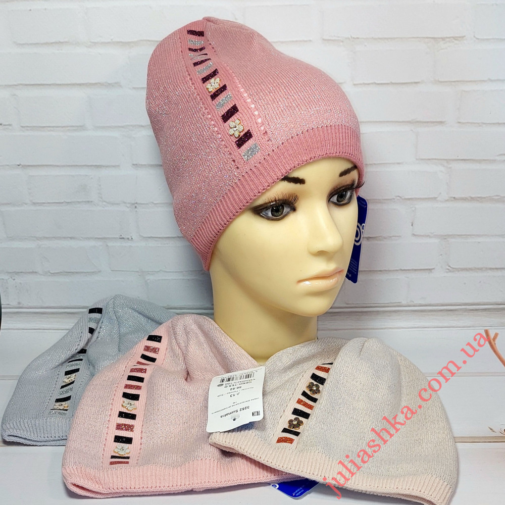 вязаная шапочка на трикотажном подкладе для девочек