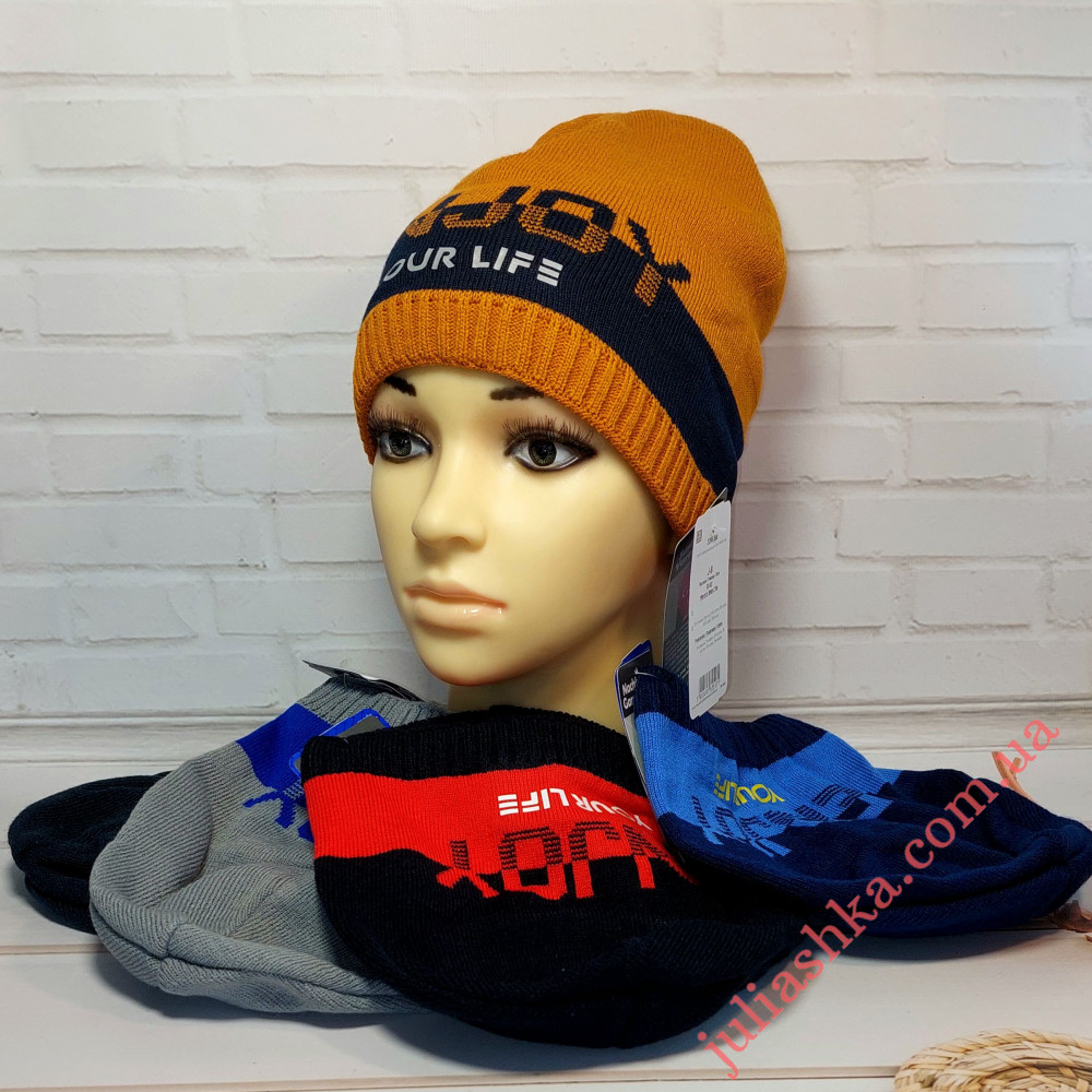 в’язана шапочка на трикотажному підкладі для хлопчиків