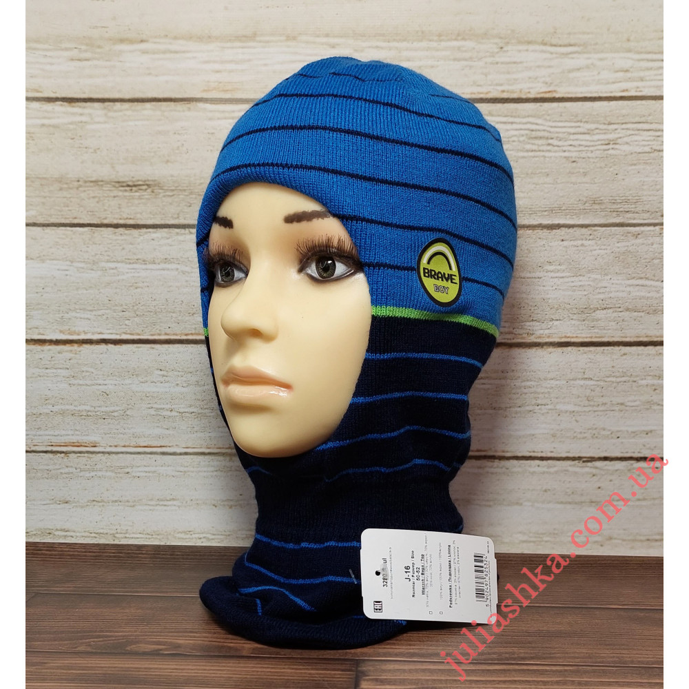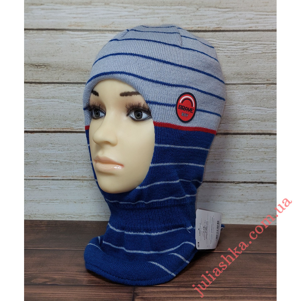 вязаная шапка-шлем на трикотажном подкладе для мальчиков