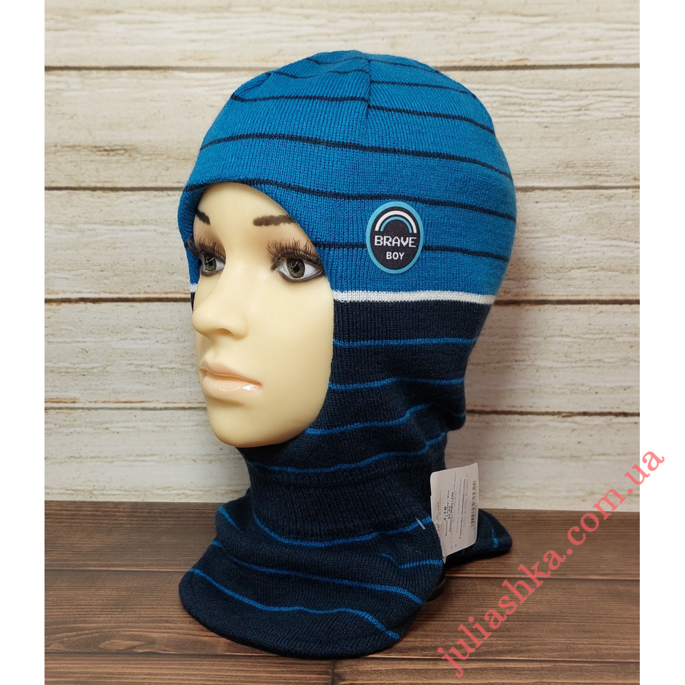 в’язана шапка-шлем на трикотажному підкладі для хлопчиків