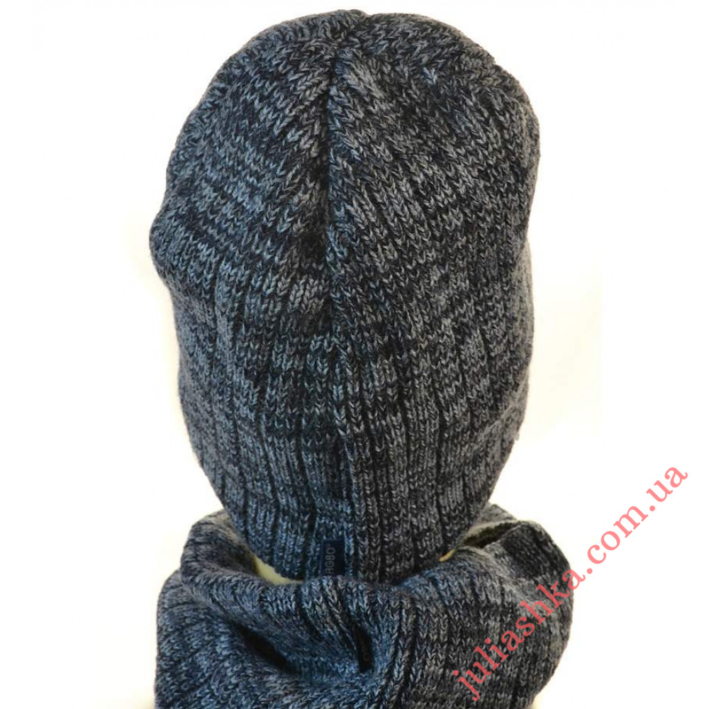 зимний вязаный комплект-шапочка на флисовом подкладе и хомут