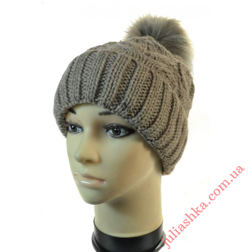 підліткова зимова в'язана шапка з відворотом на флісовому підкладі