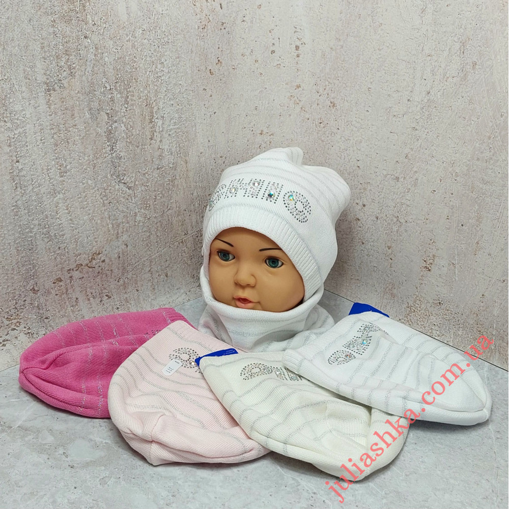 в’язаний комплект-шапочка на трикотажному підкладі та одинарний снуд