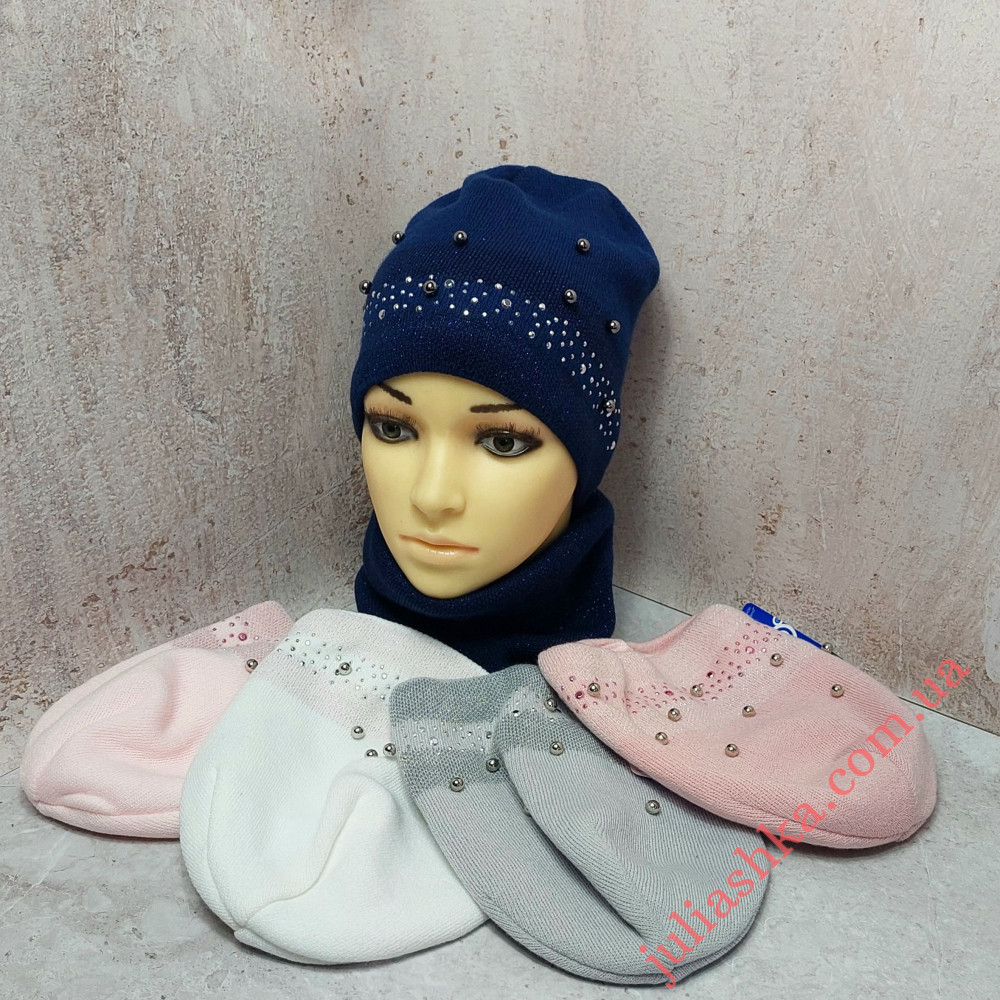 вязаный комплект-шапочка на трикотажном подкладе и одинарный снуд