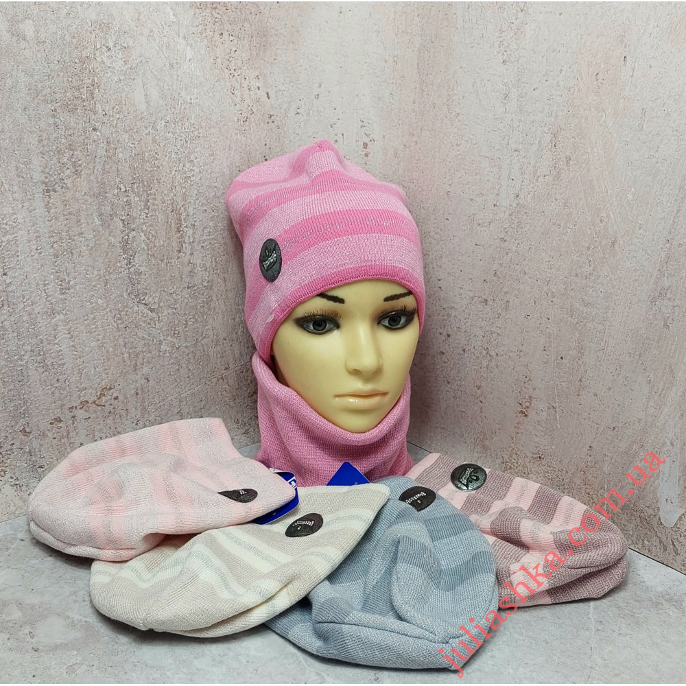 вязаный комплект-шапочка на трикотажном подкладе и одинарный снуд