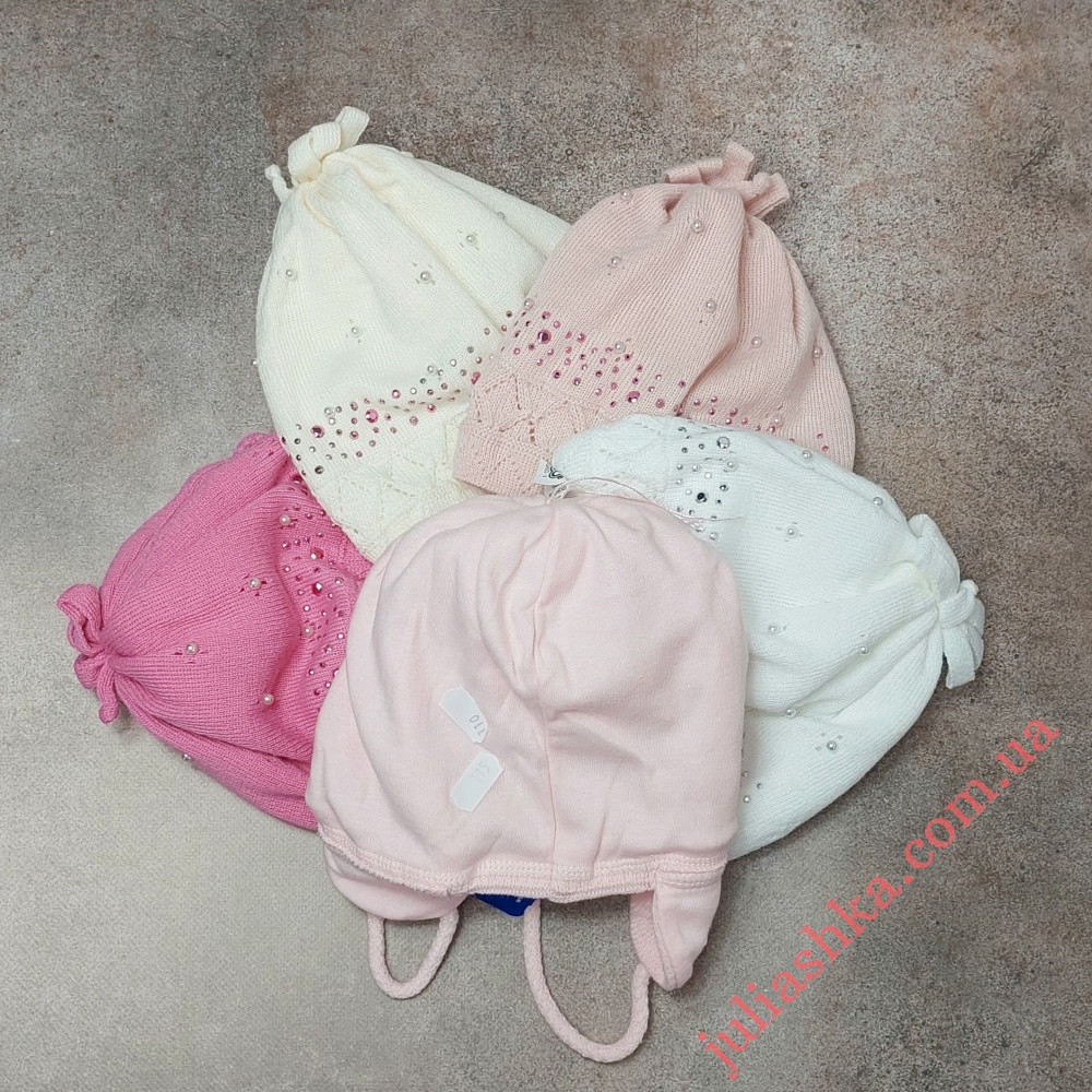 в’язана шапочка на трикотажному підкладі для дівчат