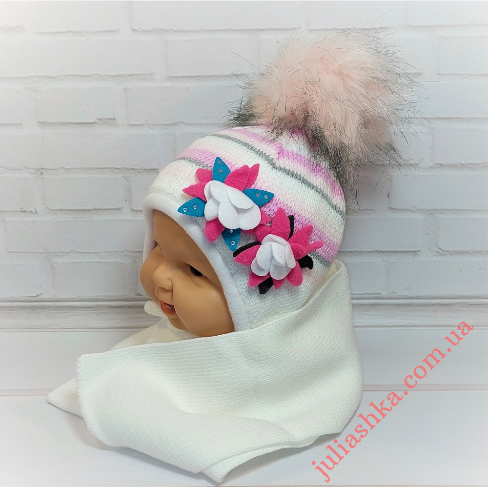 вязаный комплект - шапочка на флисовом подкладе и шарф