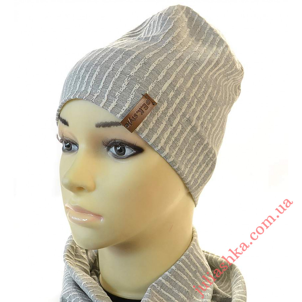 дитячий комплект- шапочка (2в 1) на трикотажному підкладі та снуд