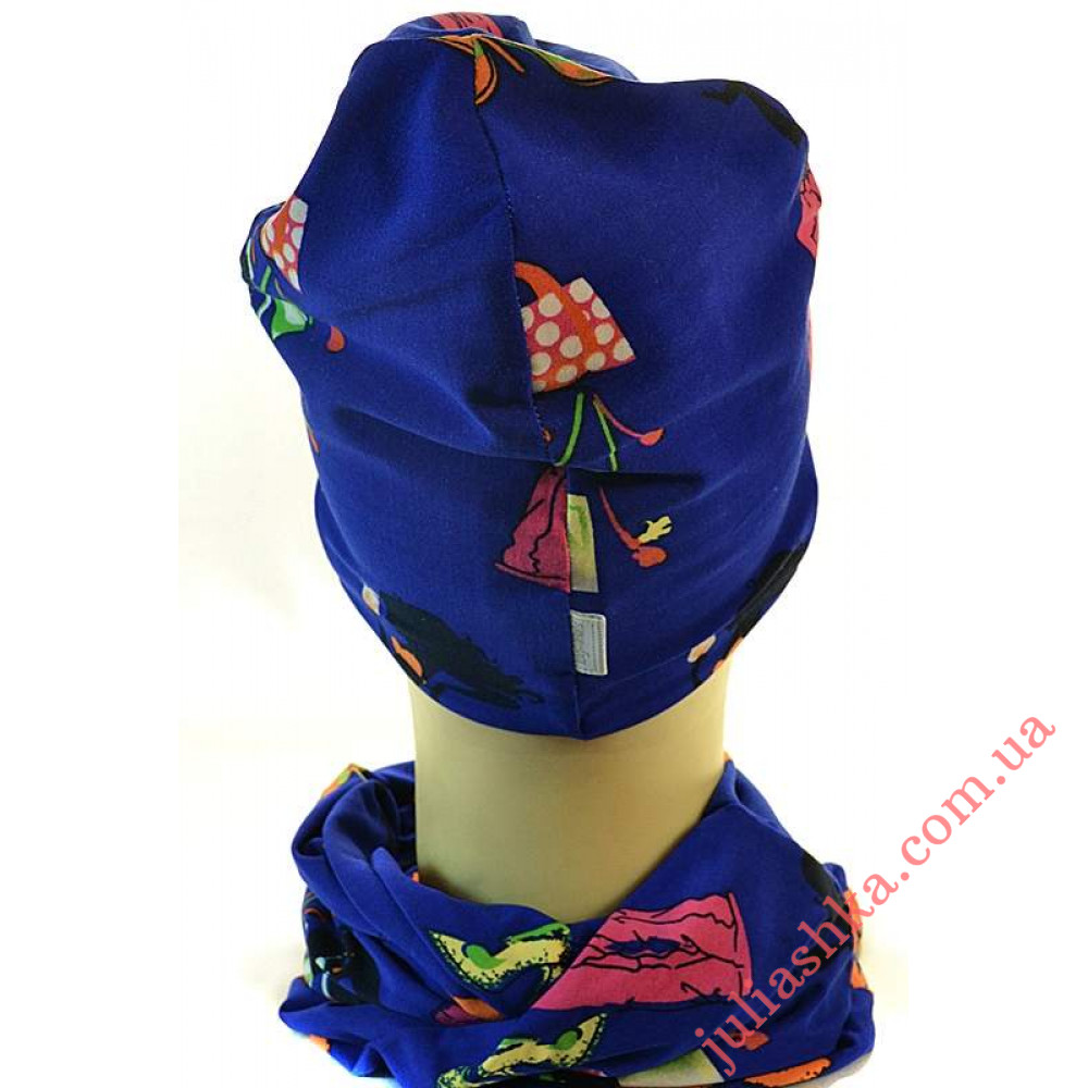 комплект для дівчат-шапочка на трикотажному підкладі та снуд