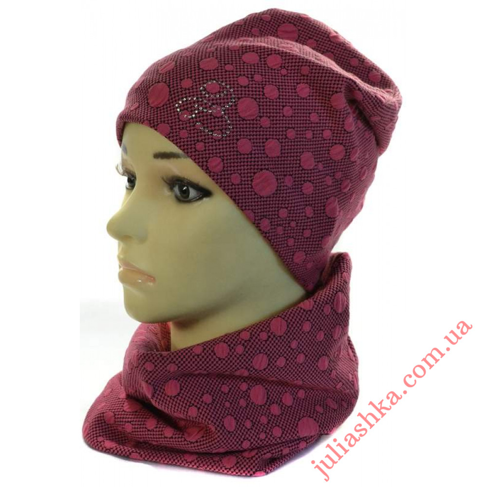 комплект для дівчат -шапка на трикотажному підкладі та снуд