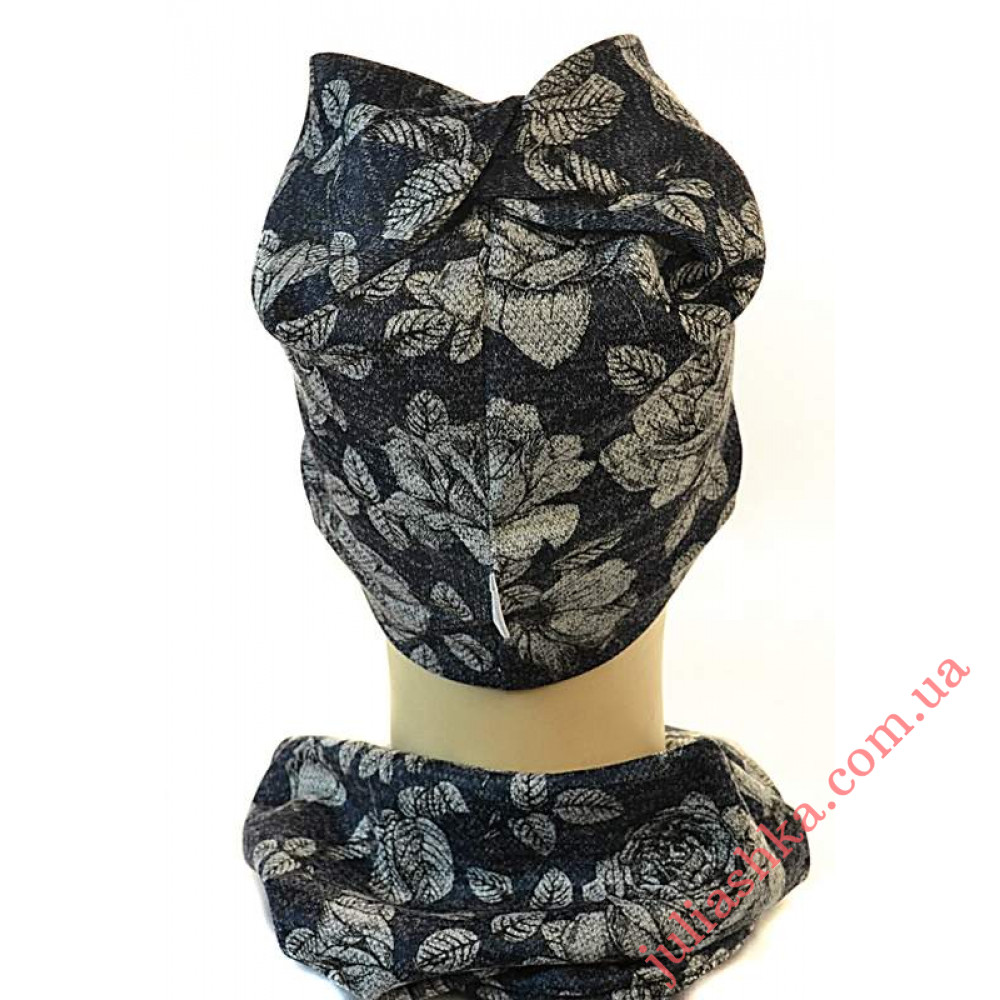 комплект для дівчат -шапочка на трикотажному підкладі та снуд