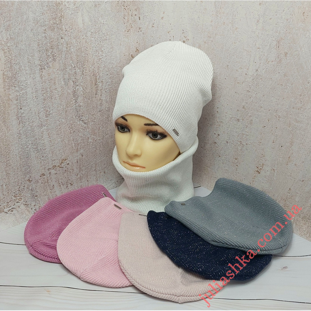 дитячий в’язаний комплект - шапочка на трикотажному підкладі та снуд