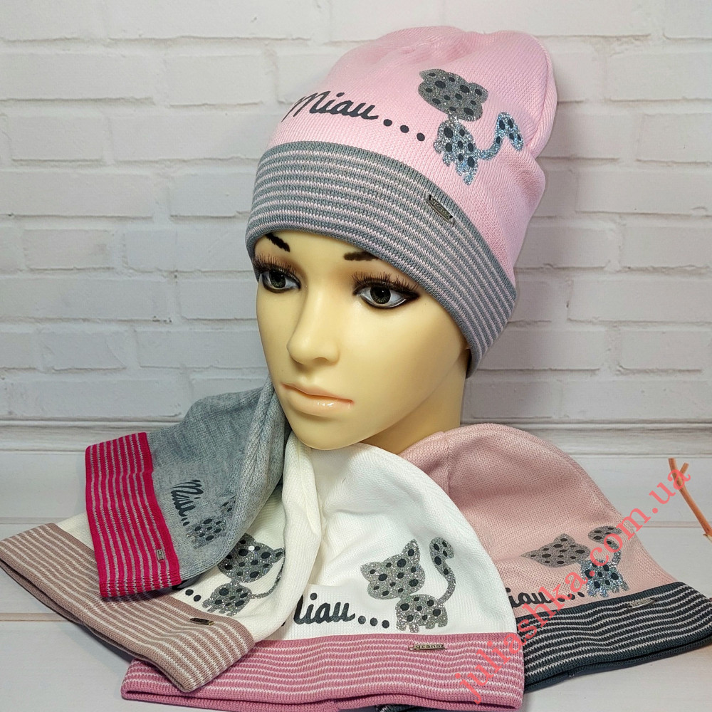 в’язана шапочка на трикотажному підкладі для дівчат