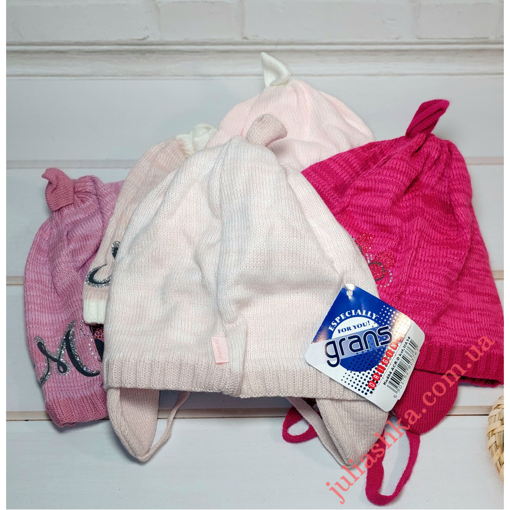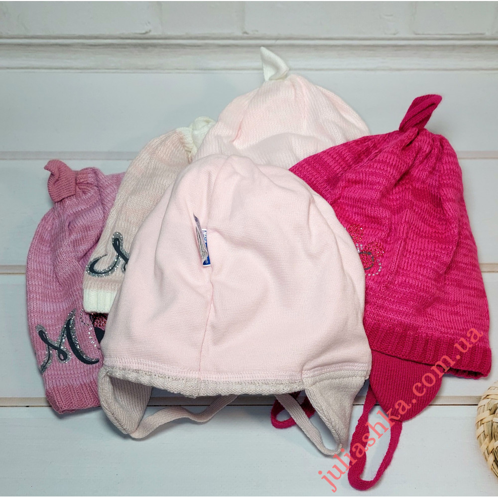 в’язана шапочка на трикотажному підкладі для дівчат